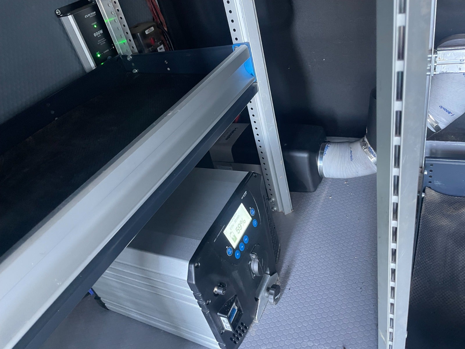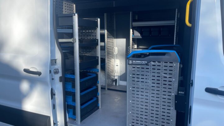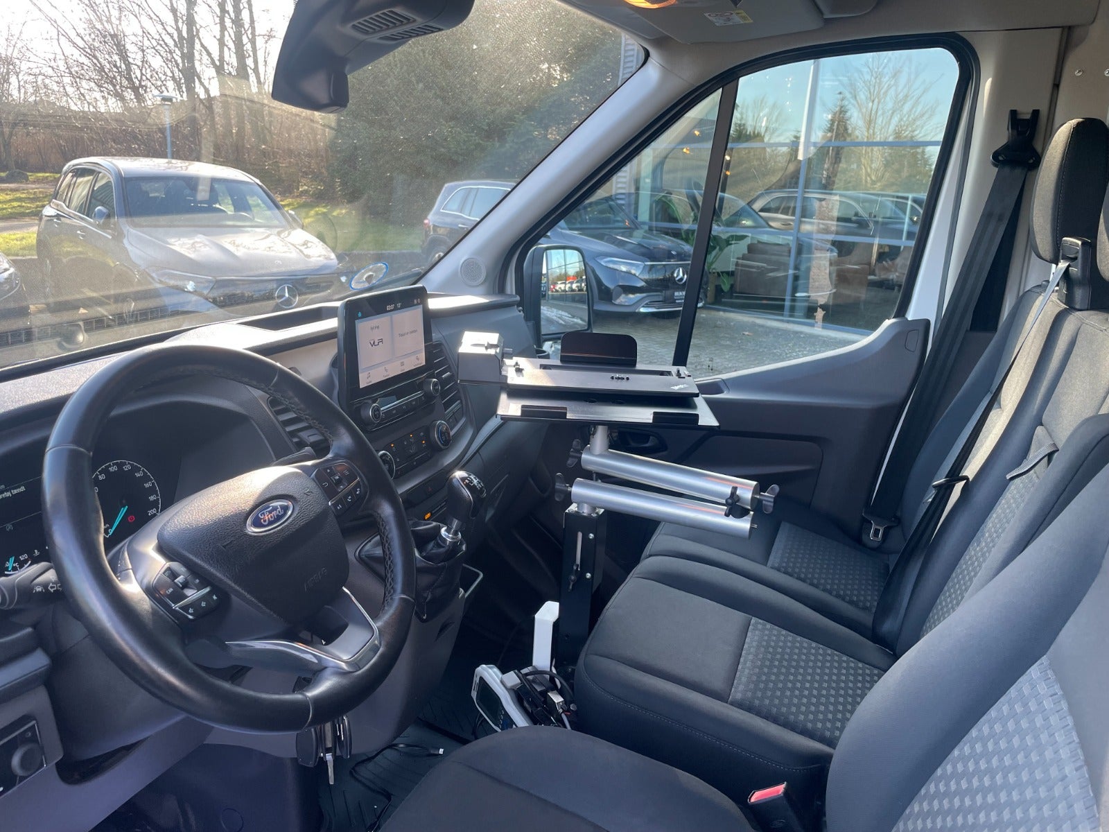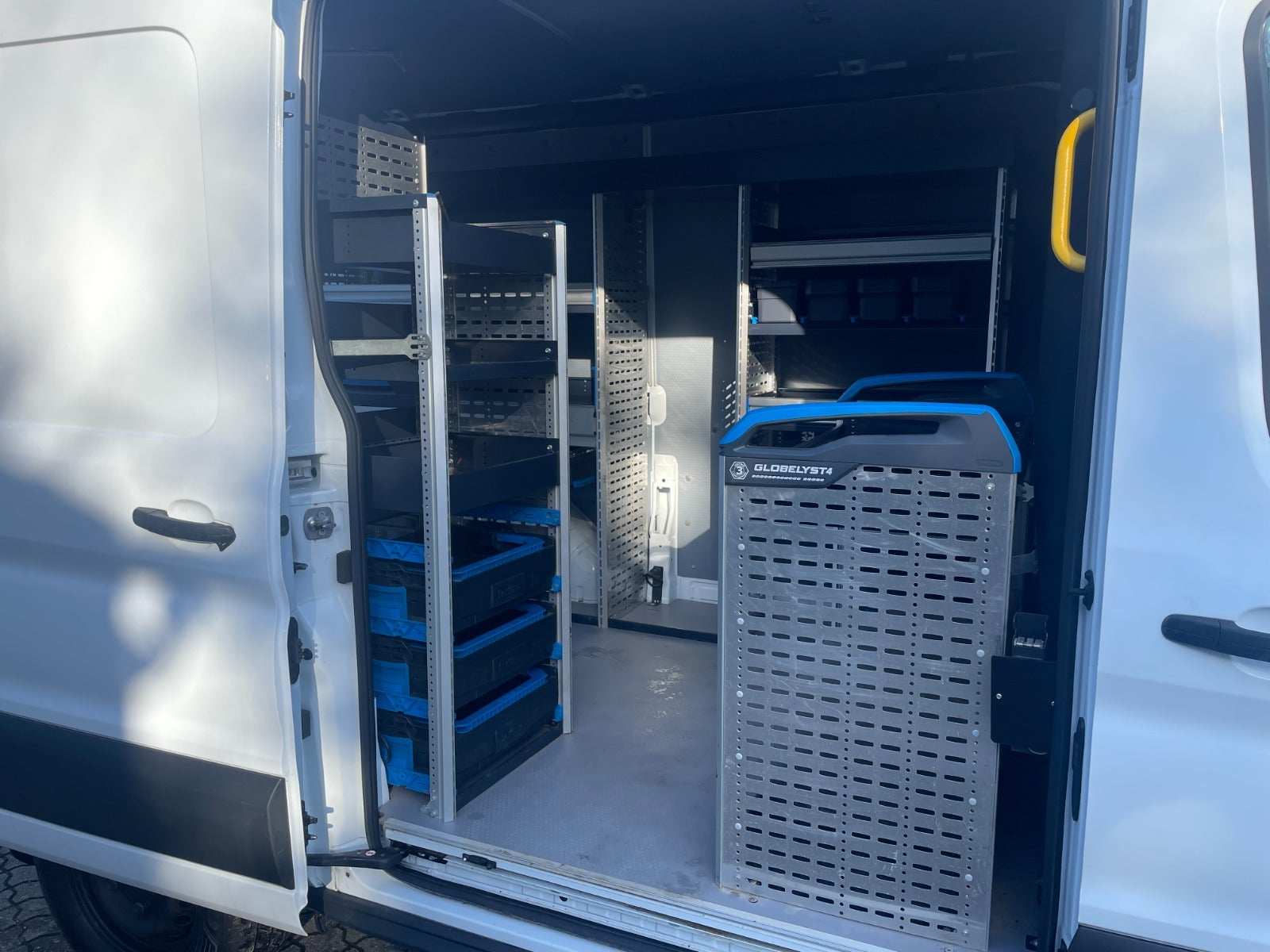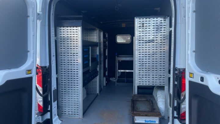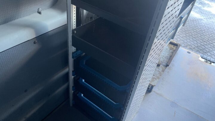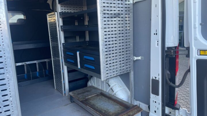 Bilen er fra fabrikken temmelig veludstyret, men her er der altså blevet bygget en ekstraordinært fin varevogn med bl.a. stor og omfattende reolindretning, foruden inverter, separat oliefyr i varerum, blitzblink for og bag, udtræk, trin, tablet/workplate i kabine mv.