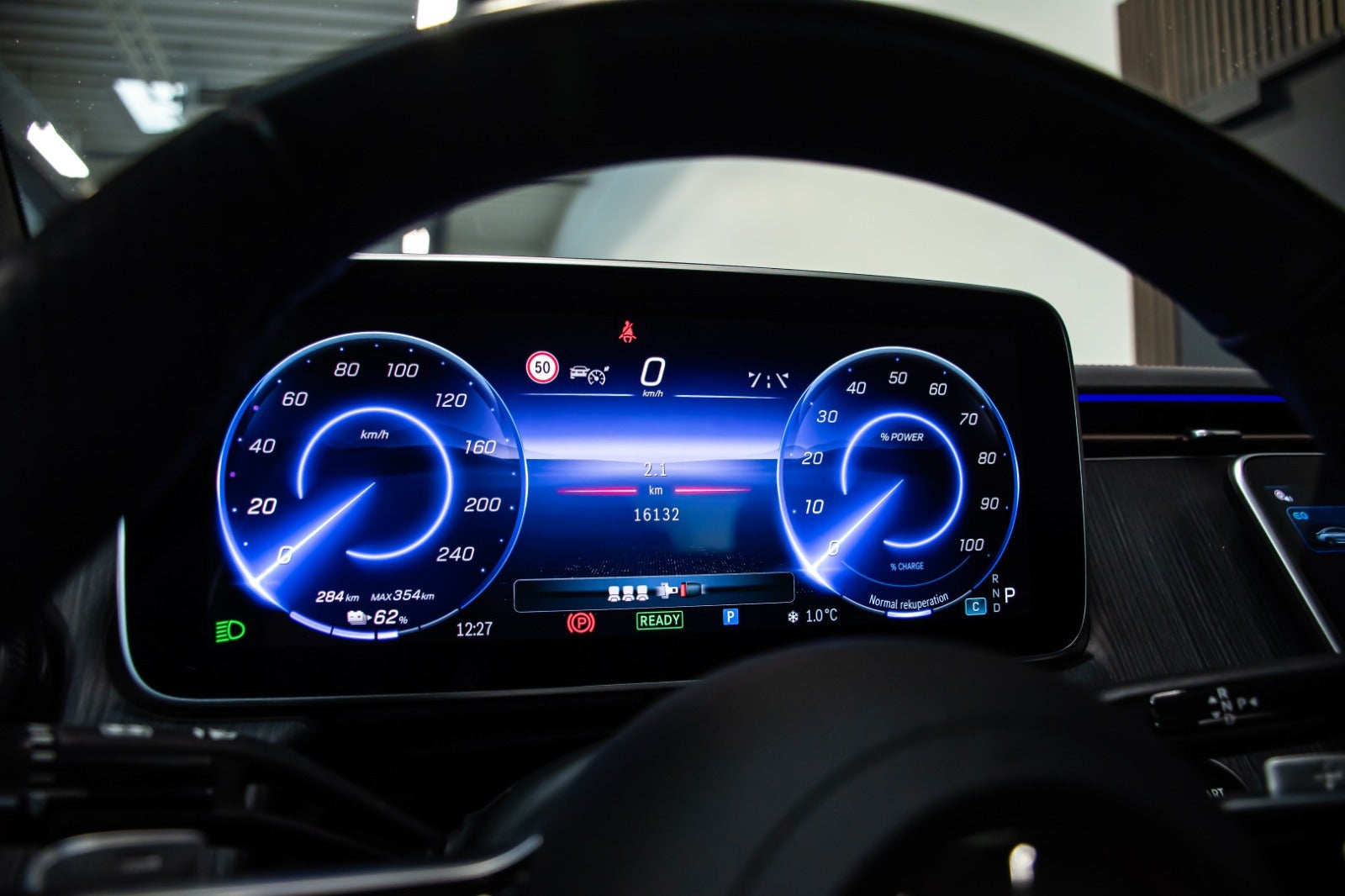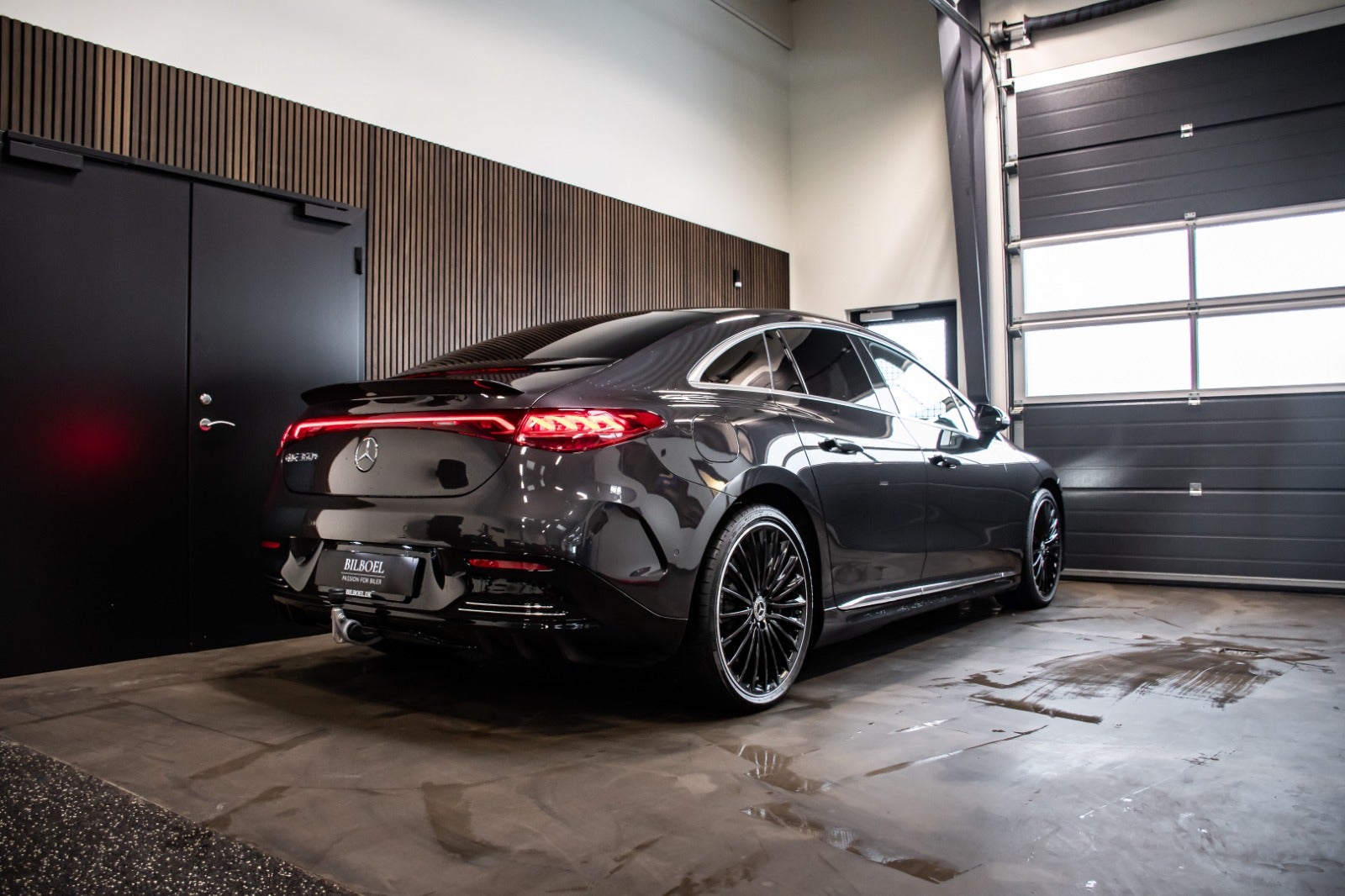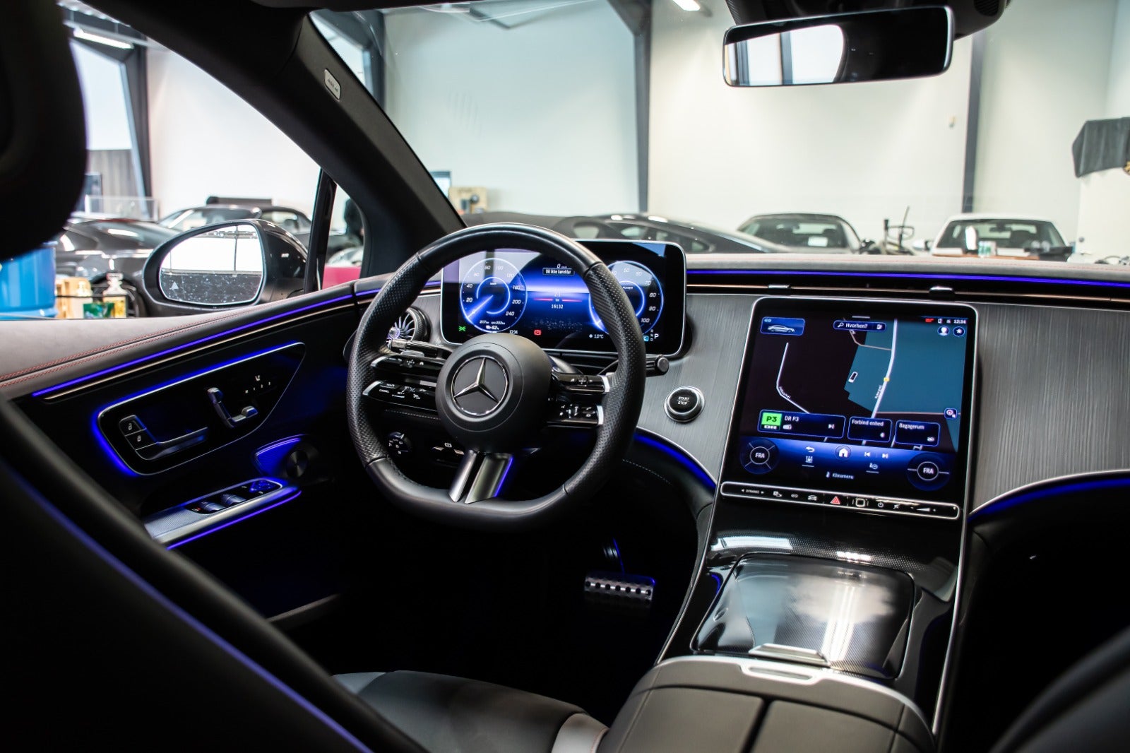 Mercedes EQE350+ er en vellykket elbil, men hvor komfort, teknologi og udseende er typisk Mercedes. Førsteklasses oplevelse.