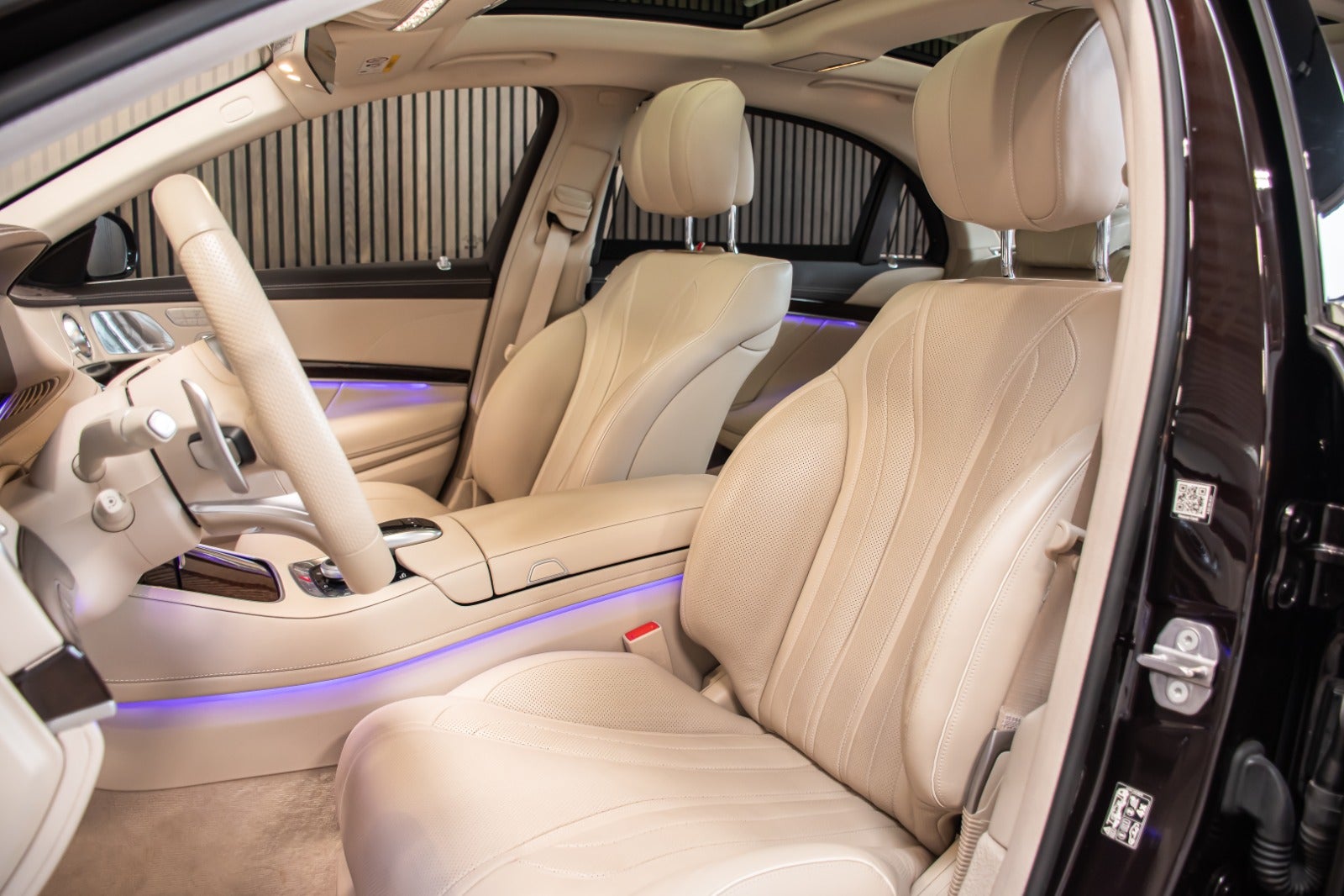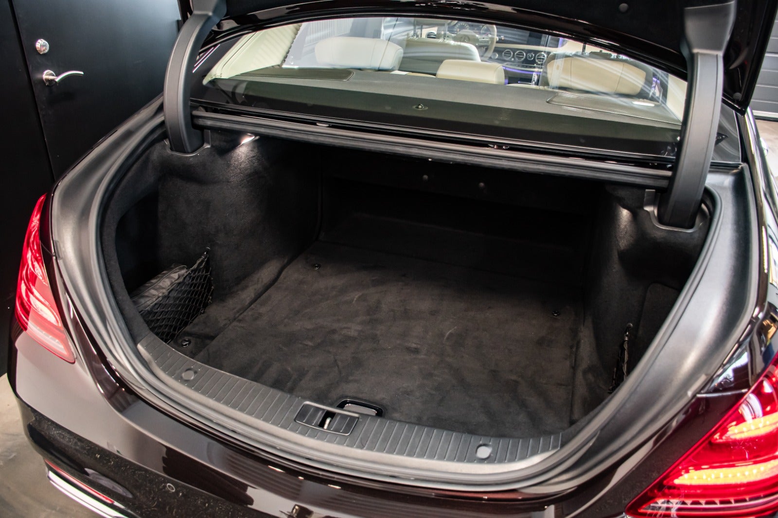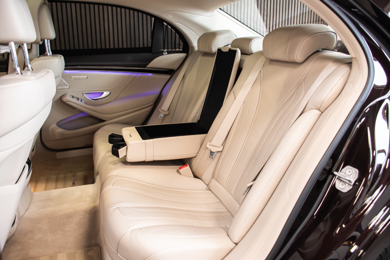 Uimodståelig og sjældent udbudt luksusliner, Mercedes S400 d Lang model i Rubinsort metallak og beige læderstue.