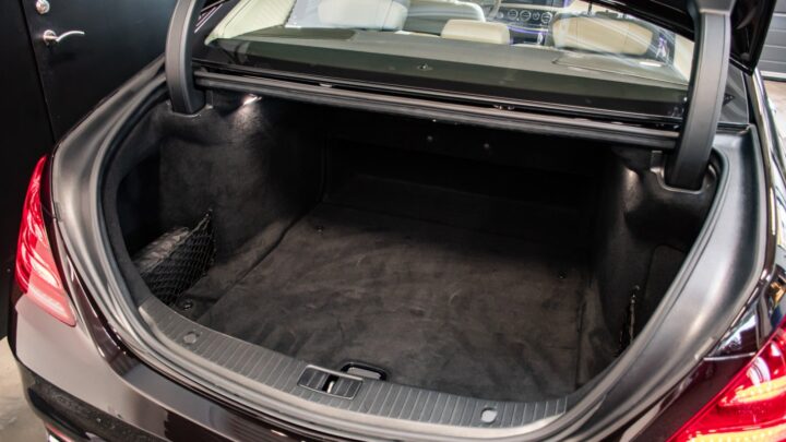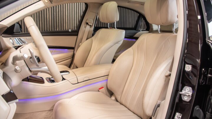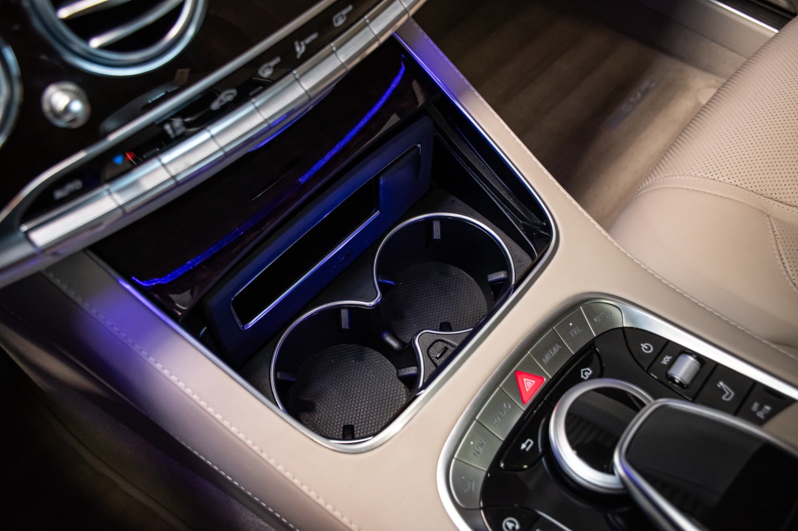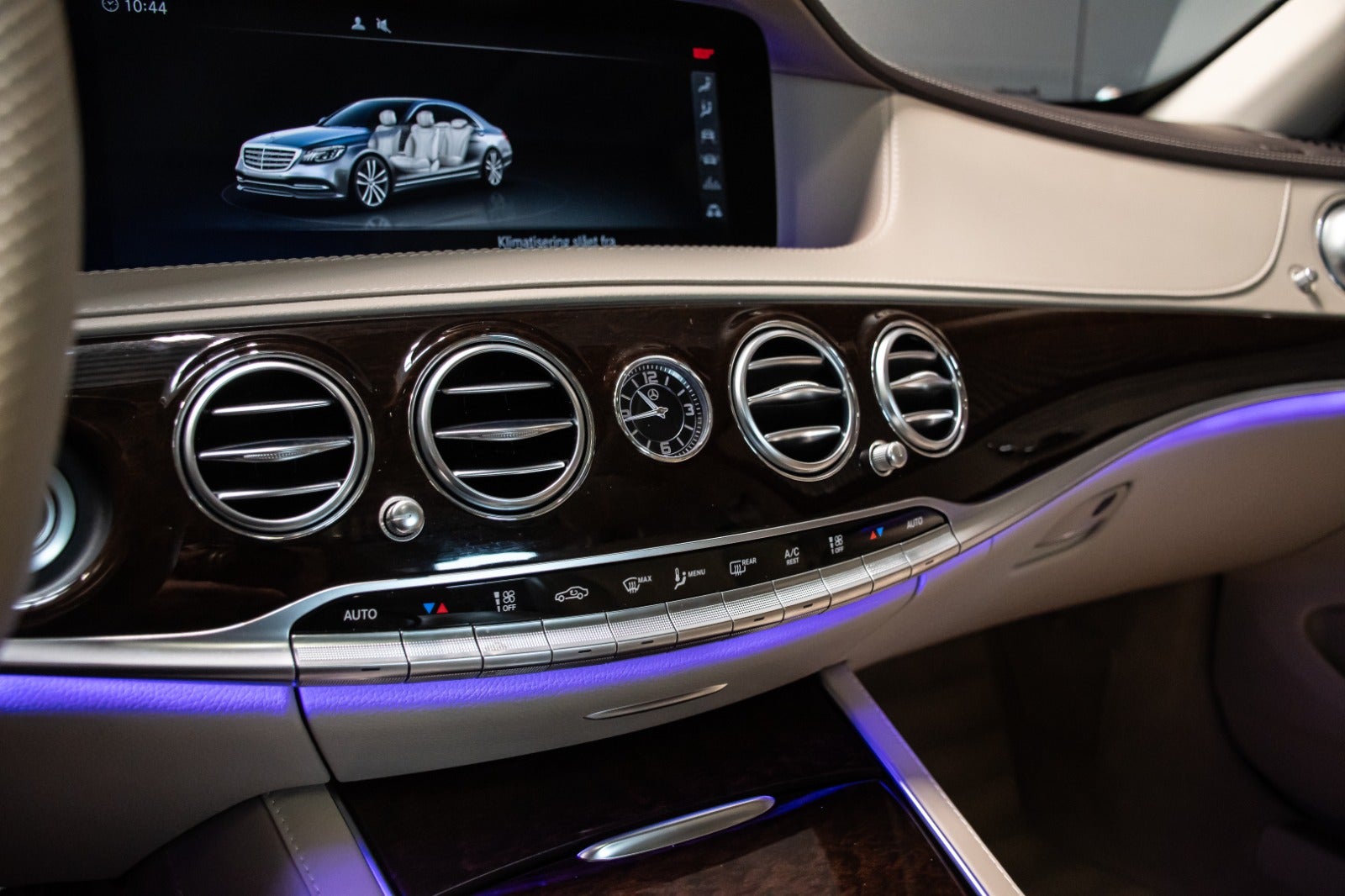 Uimodståelig og sjældent udbudt luksusliner, Mercedes S400 d Lang model i Rubinsort metallak og beige læderstue.