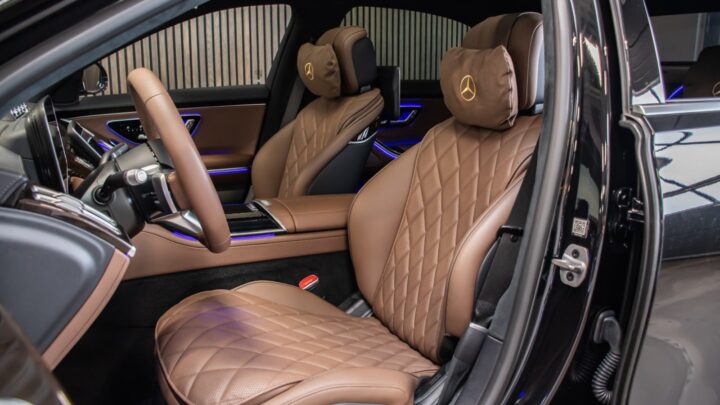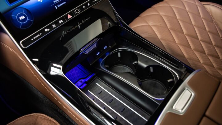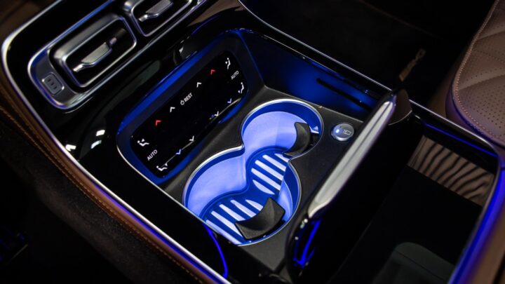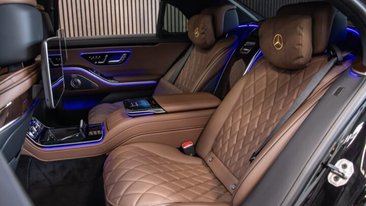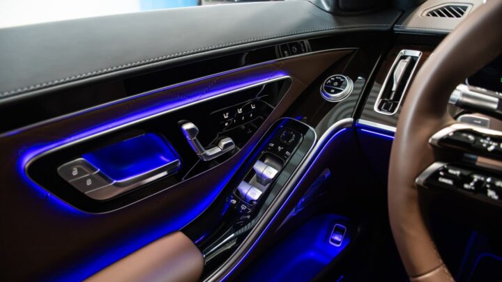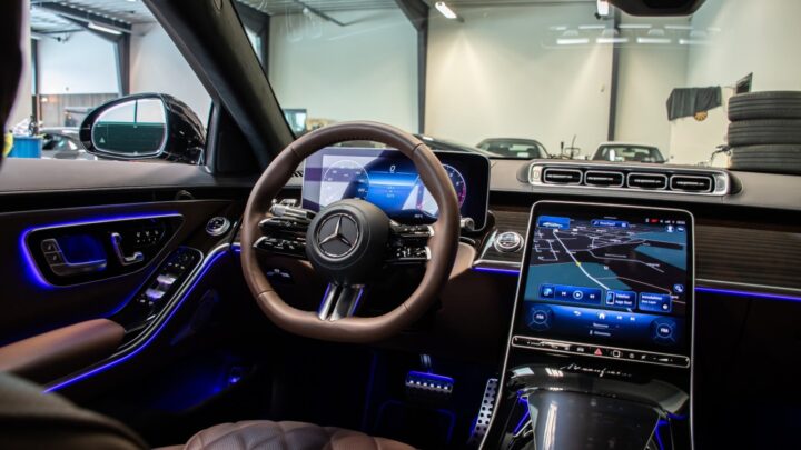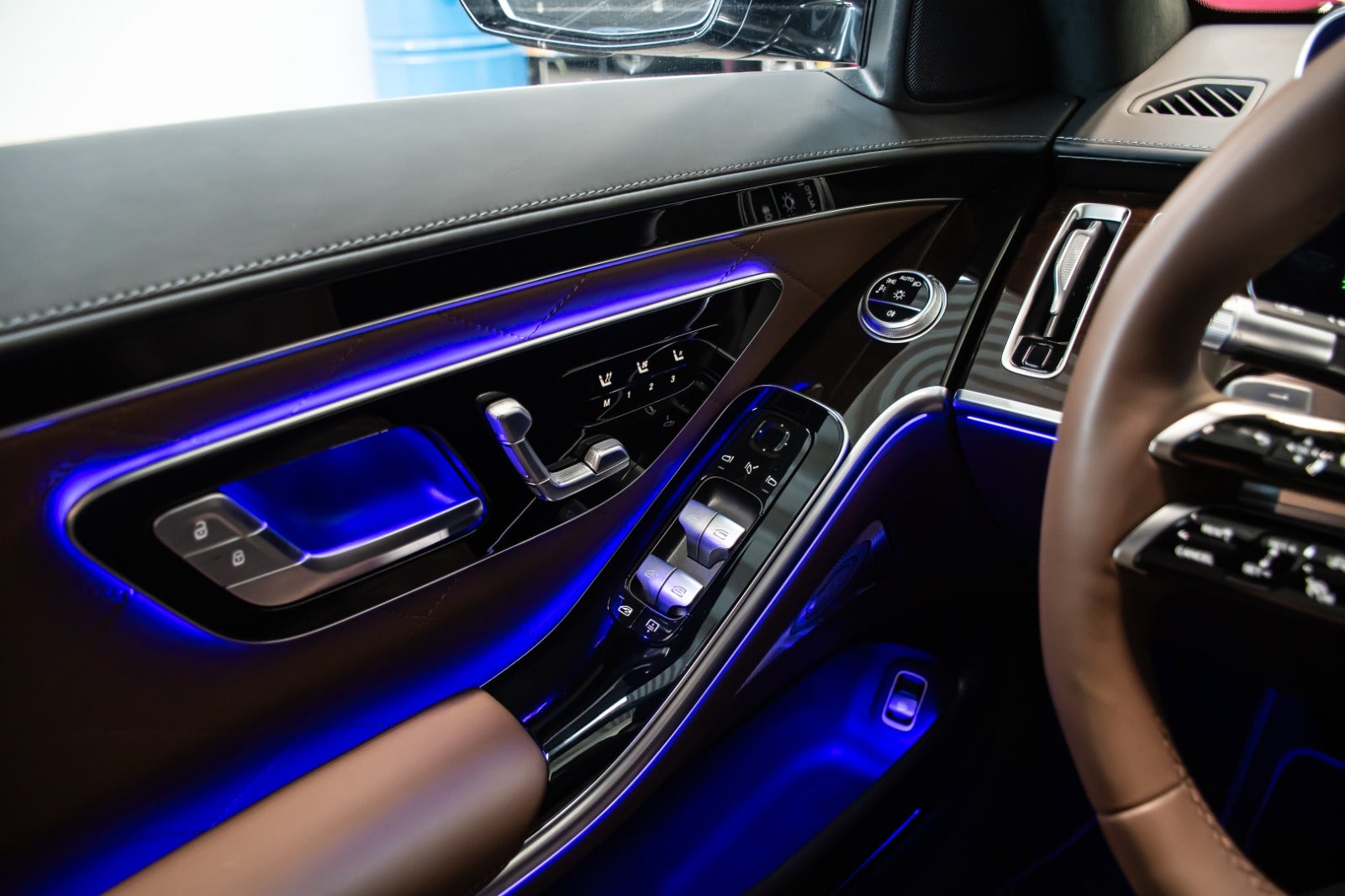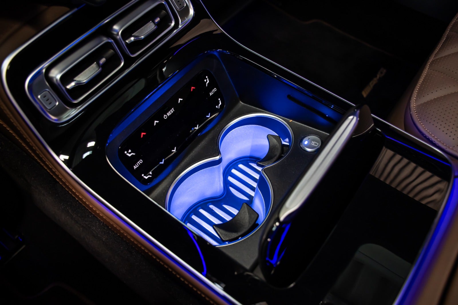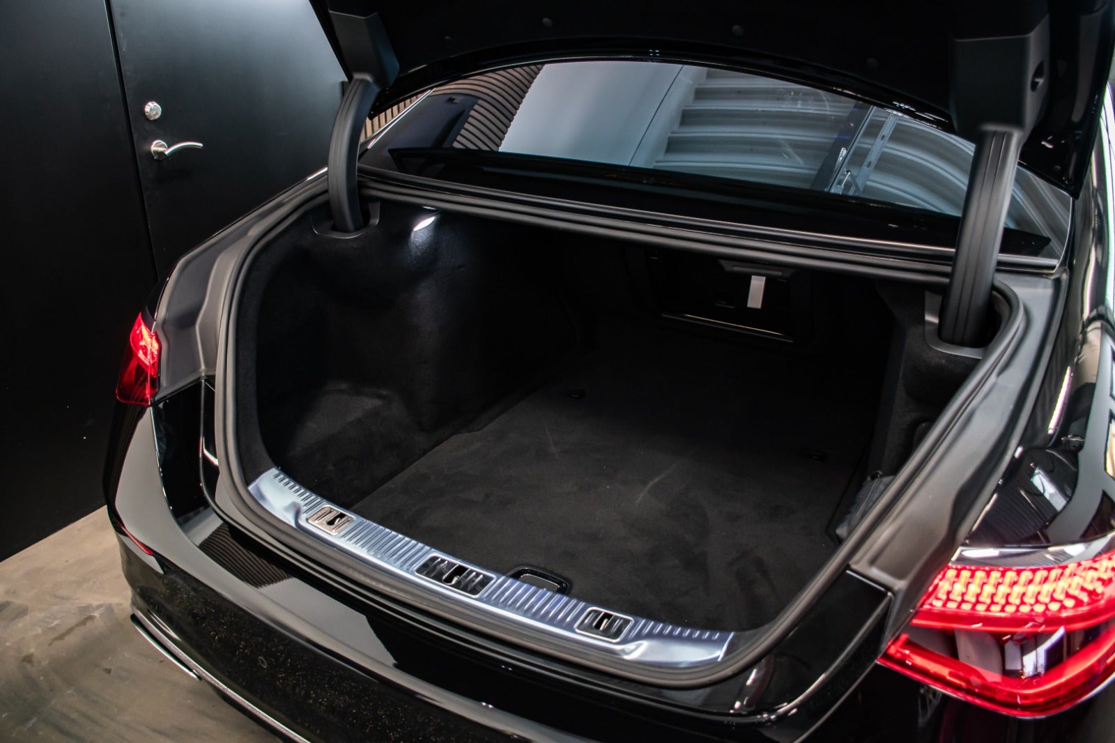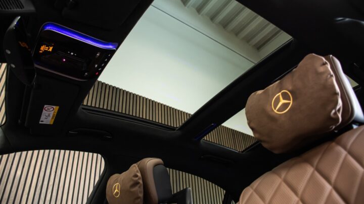 Indvendig kan du tage dig til takke med de store og overdådige Business Class sæder i bag m. varme, køl, massage og selvfølgelig memory. Skal du arbejde, slår du blot cafébordet ud, og trænger du til at se nyheder eller blive underholdt, tænder du blot for MBUX skærmene. Kabinen er prydet med MANUFAKTUR syninger og læder i den særlige MOCCA-brown, og sammen MANUFAKTUR listerne i brun valnøddetræ er det virkelig en perfekt kombination.