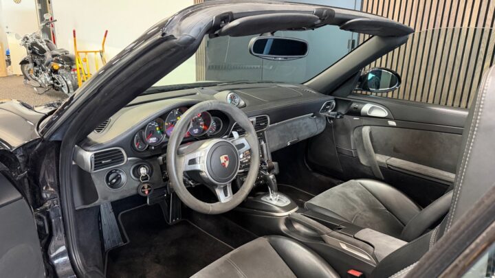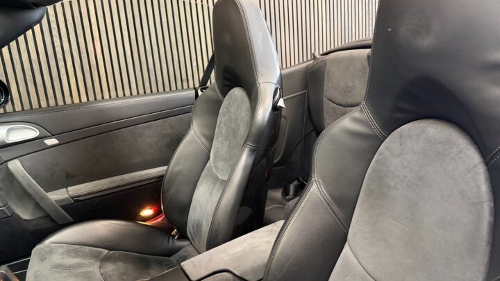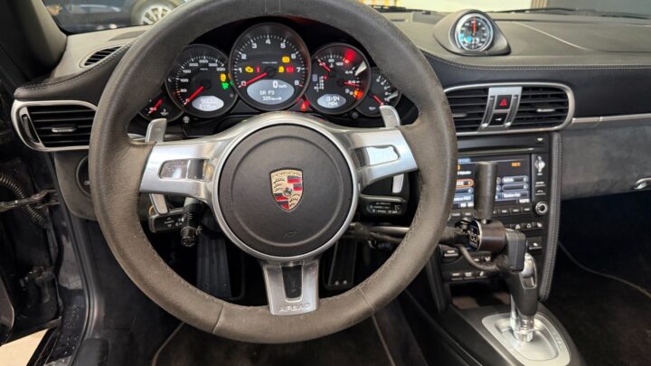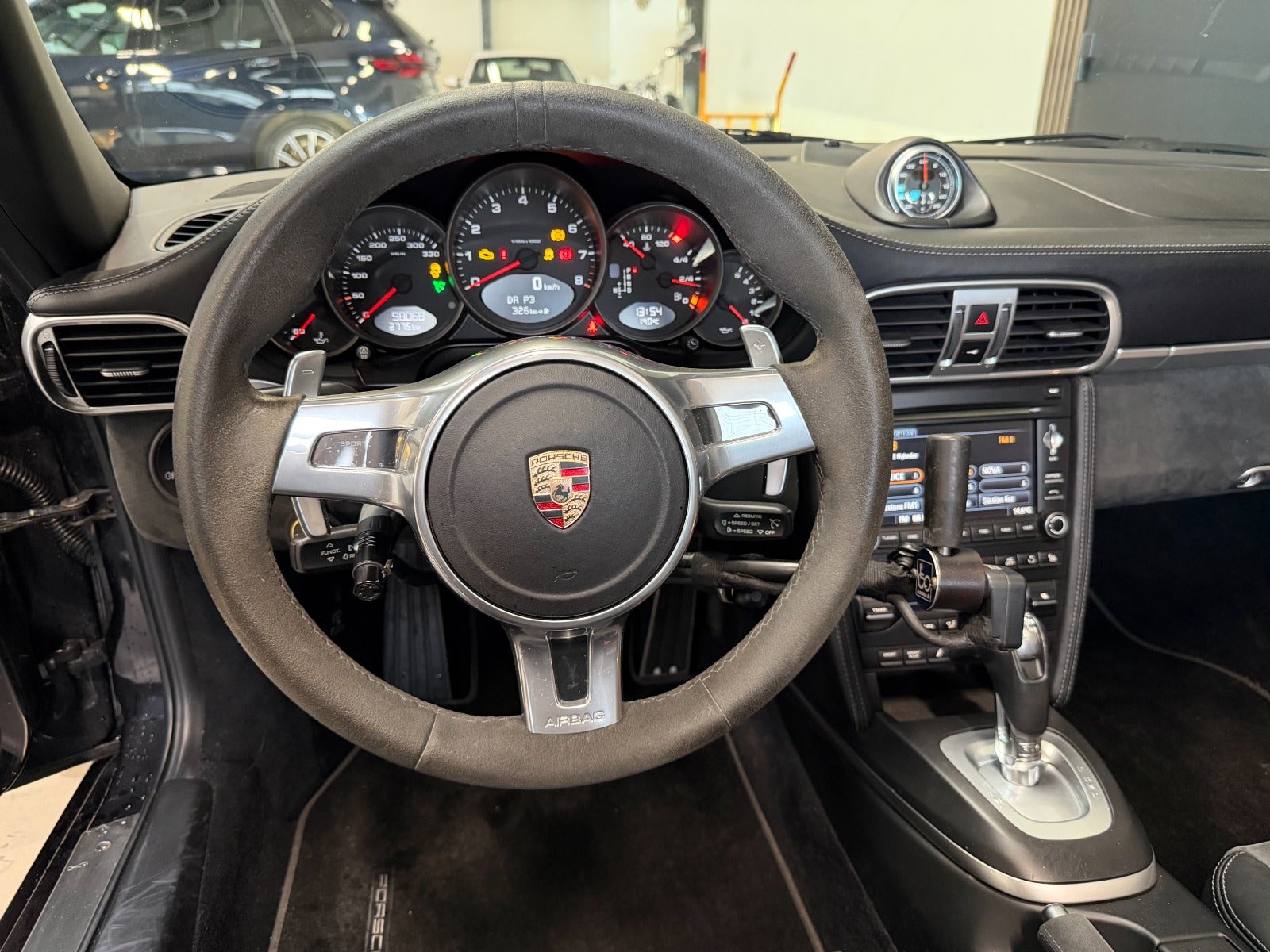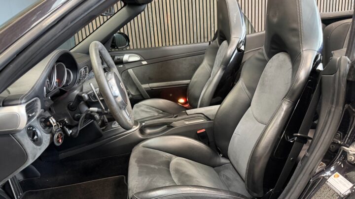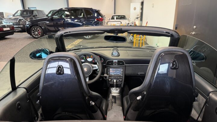 Porsche 997.2 GTS Cabriolet i en uimodståelig sammensætning, der kræser for detaljen uden at vække for stor opsigt. Her kan du sætte dig til rette i de lækre sportsstole i alcantara/læder, lytte til din yndlingsmusik fra det velspillende BOSE-anlæg, og ellers bare glemme alt mellem tid og sted i denne fantastiske Cabriolet.
